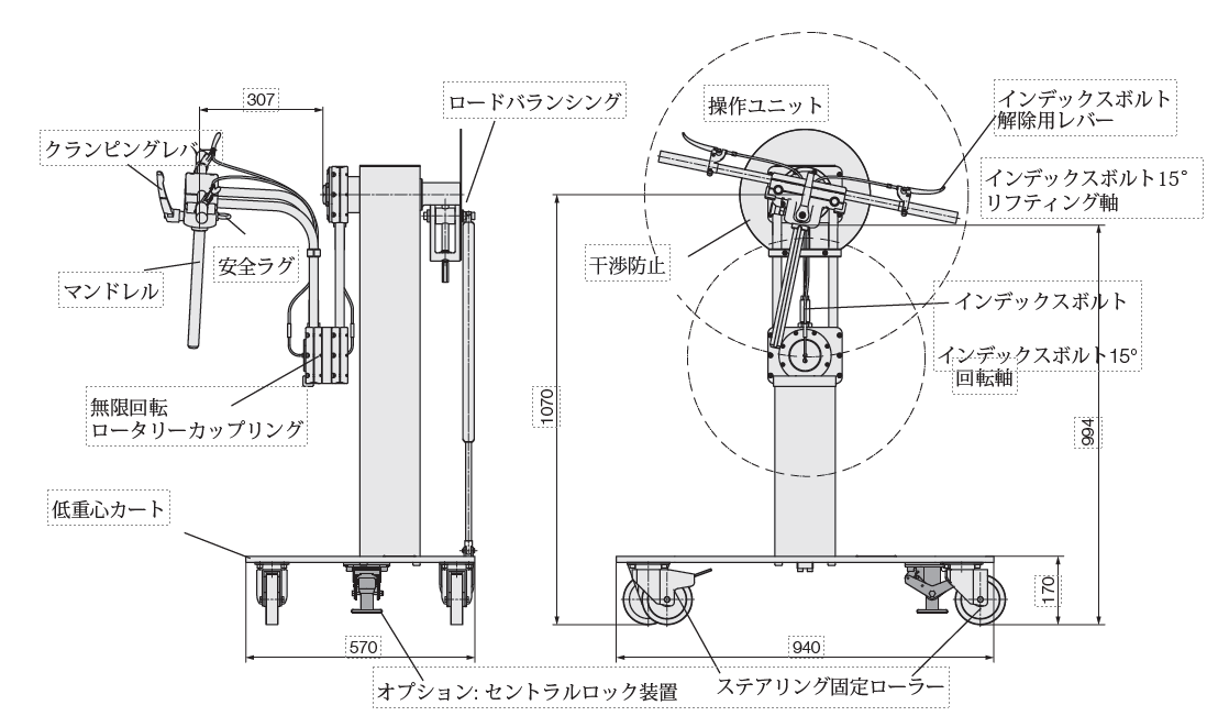 ・作業者によって異なる、最適な作業高さ、位置に調整可能