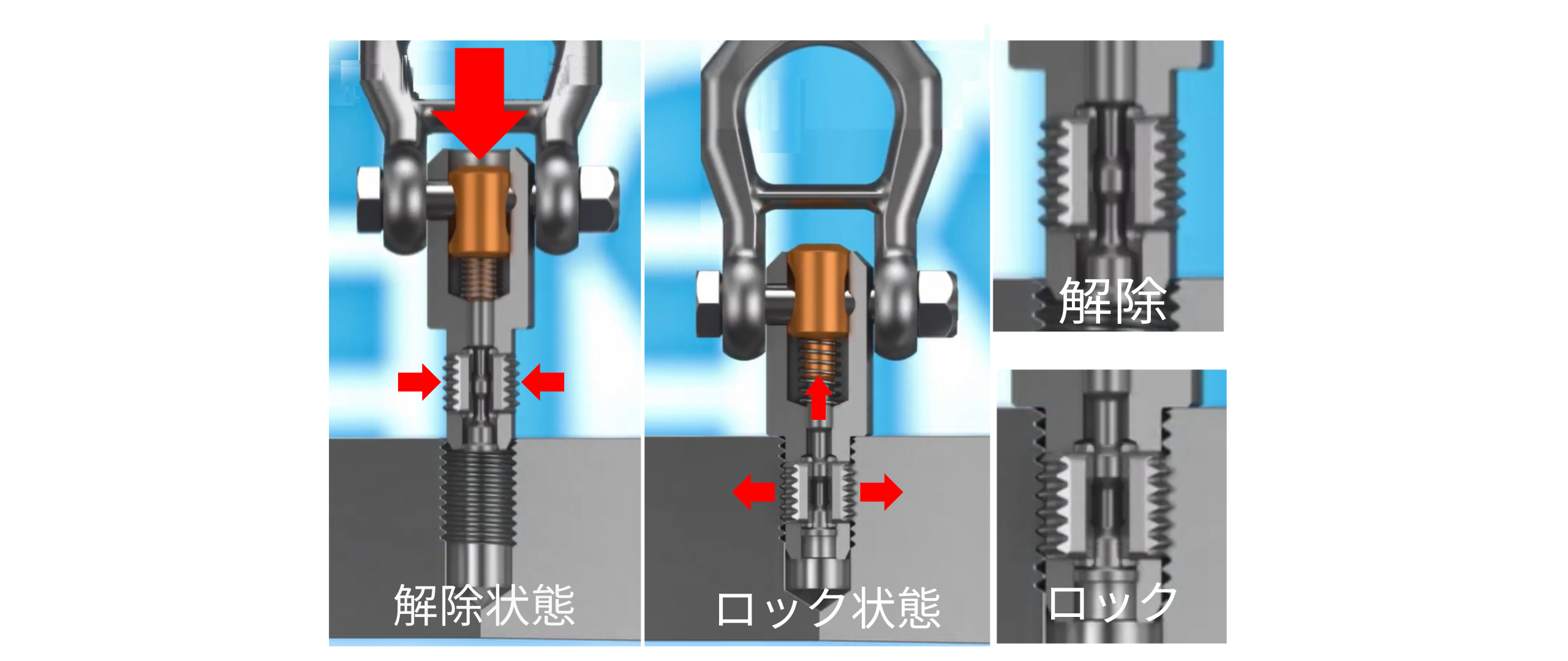 ネジ山クランプ式リフティングピンの動作原理については、動画タブの各動画をご覧ください。