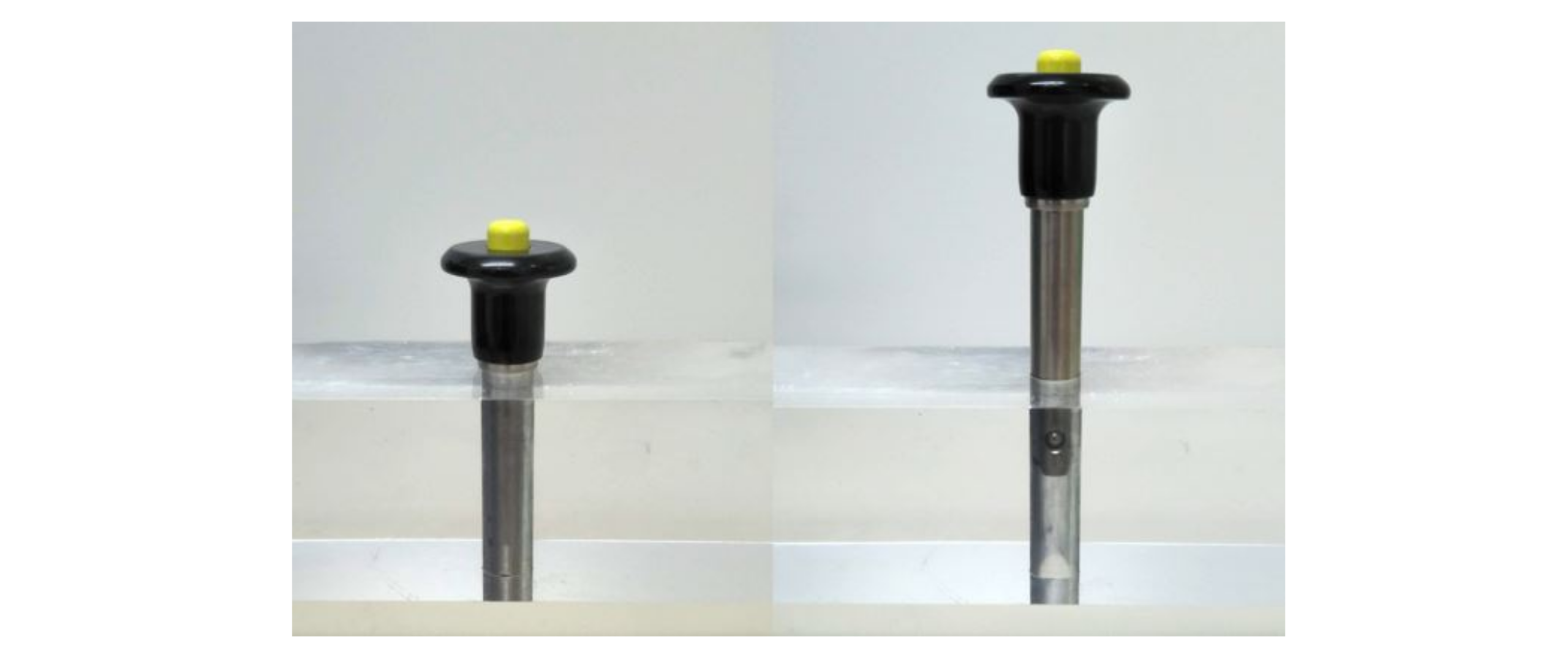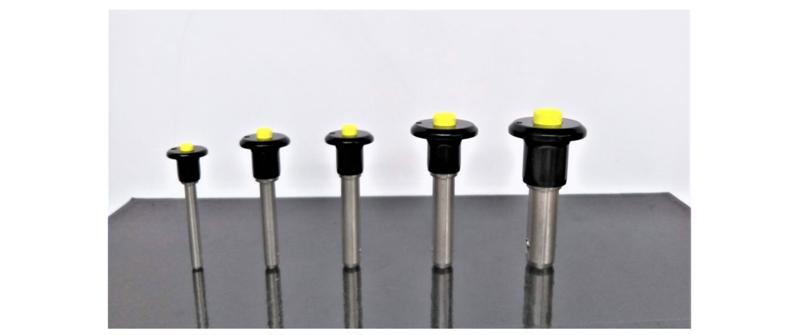 クランプロックピンとは、ボルトなどの代わりにボタンを押しながらピンを穴(公差H11)に差し込むことにより、部品や板金などをワークや治具に固定することができるピンです。さらに、固定以外にも仮止め・交換・位置決め・保持・連結にも使用できます。