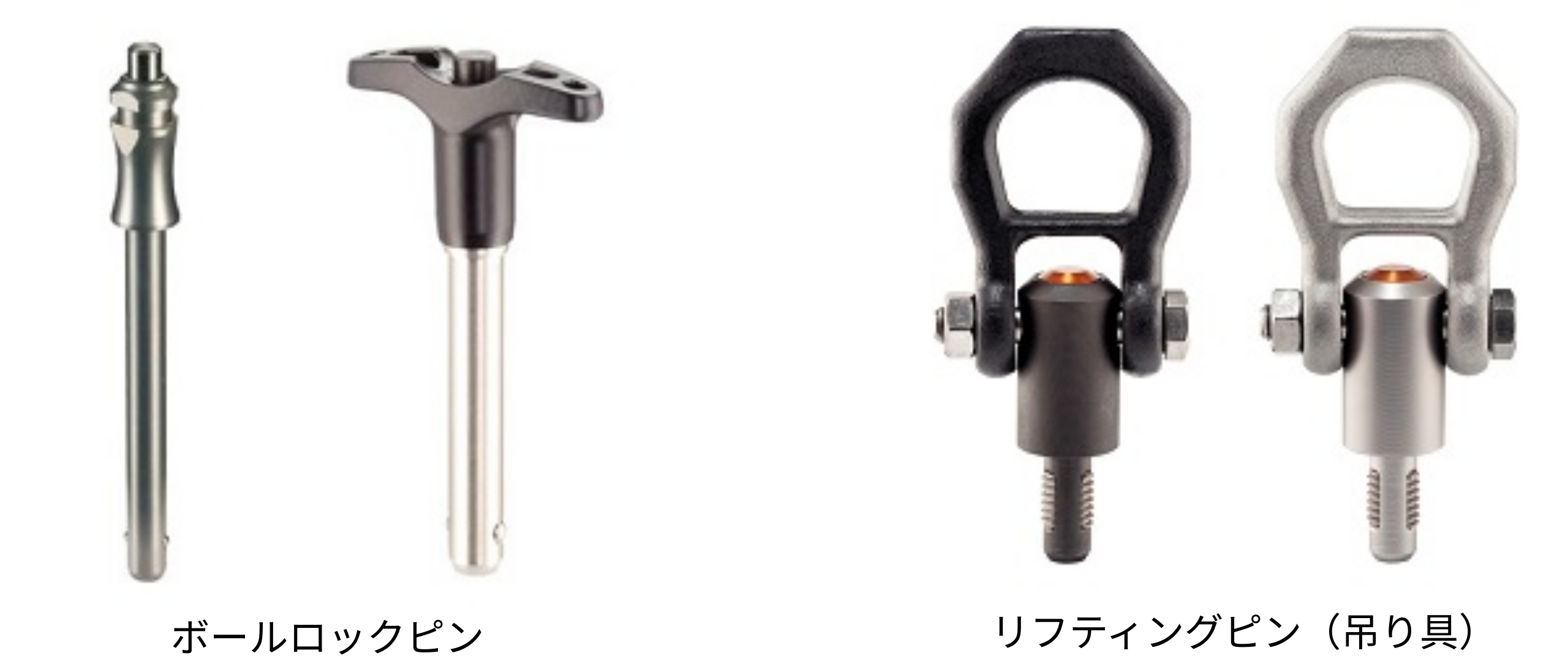 なお、クランプロックピンは、ロックピン、ボールロックピン、セーフティーピン、クイックリリースピン、差し込みピンとも呼ばれます。また類似品に、貫通穴の端面をクランプするロックピンや吊り具のリフティングピンがあります