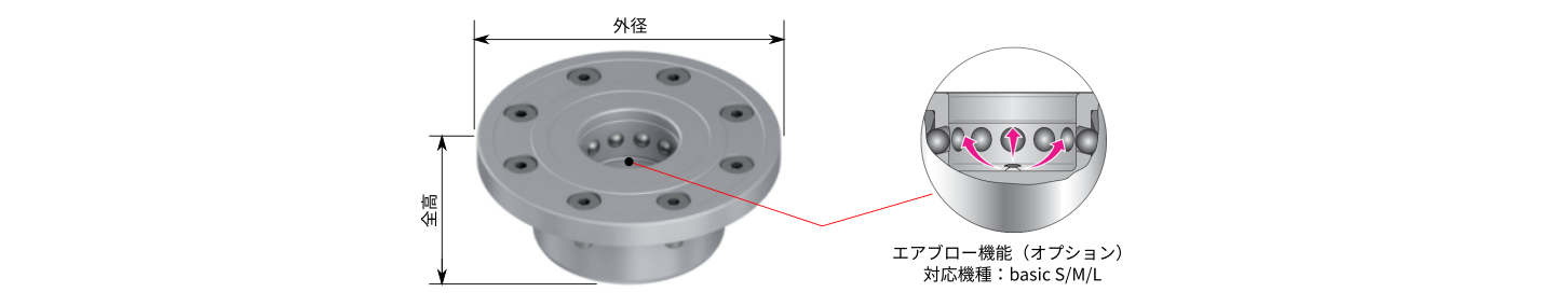 クランプ状態は、basic本体内部のばねによって保持され、空圧または油圧によって解除されます。