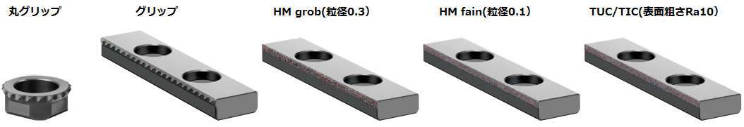 重切削に威力を発揮するグリップ爪や、仕上げのためのフラット面を、口金インサートで選択可能