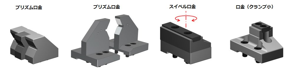 5軸加工用バイスとは、ワークをクランプしたバイス本体が、多方向からのツールアクセスに対して極力干渉しない形状に最適化されたクランプ製品です。一度のクランプで多くの加工工程に対応できることから、ワーク脱着による精度低下や工作機械のダウンタイムの削減に大きく貢献できる5軸加工機に適した精密バイス製品です。センタリングクランプ、五軸マシンバイス、センタークランプバイス、5軸(面)加工機対応マシンバイスとも呼ばれます。