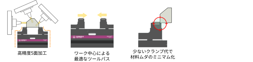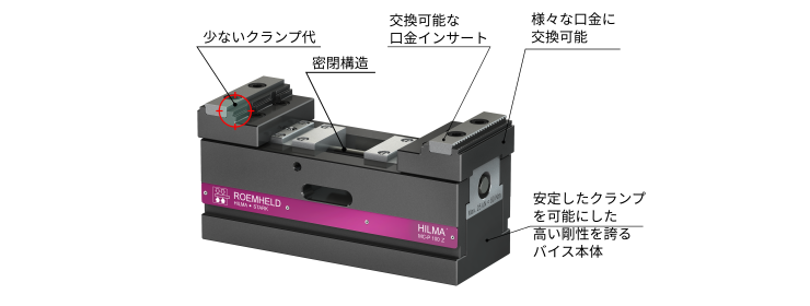 マシンバイスで高度な技術を持つロームヘルドグループ(Roemheld)のヒルマ(HILMA)が開発した「MC-Pシリーズ」は、高い剛性とクランプ力を実現し、例えば、安定したクランプ/ツール・主軸干渉を抑える/クランプ代を抑えるなどの、5軸加工におけるクランプ製品に求められる条件をクリアしており、ユーザーに既に高い評価を得ております。