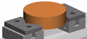 MC-PZB本体(ワーク固定用スピンドル(上側)、スライド部固定用スピンドル(下側))