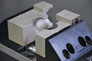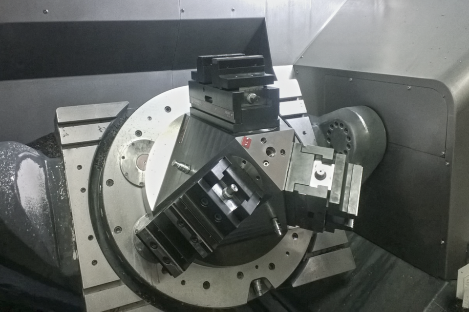 5軸加工用バイスとは、ワークをクランプしたバイス本体が、多方向からのツールアクセスに対して極力干渉しない形状に最適化されたクランプ製品です。一度のクランプで多くの加工工程に対応できることから、ワーク脱着による精度低下や工作機械のダウンタイムの削減に大きく貢献できる5軸加工機に適した精密バイス製品です。センタリングクランプ、五軸マシンバイス、センタークランプバイス、5軸(面)加工機対応マシンバイスとも呼ばれます。