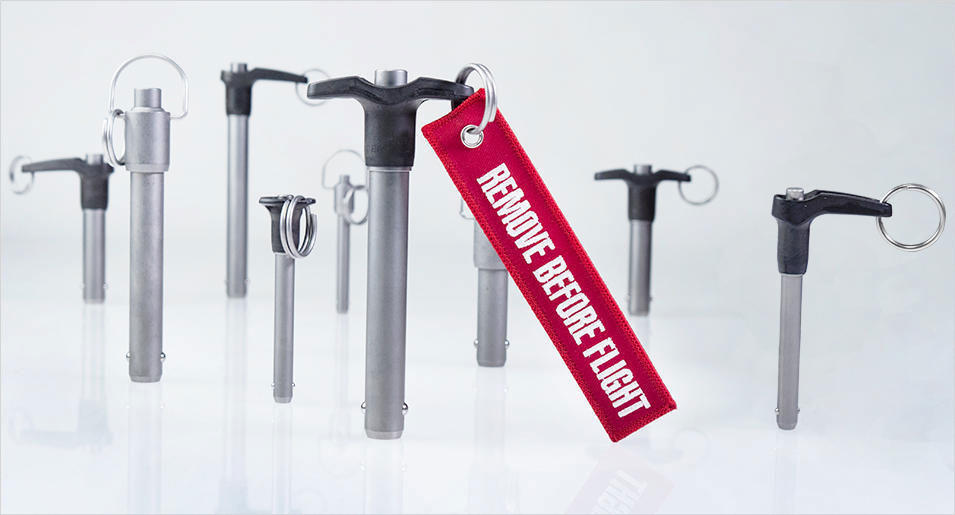 クイックリリースピン(航空用)は、航空産業規格(MS / NASM)に準拠しており航空分野において幅広く使用されているピンです。その簡単で安全な構造から機体、内装、保守、修理などに使用されています。またインチサイズが使用されている競技用自動車(レーシングカー)、米国向け産業機器にも使用されています。