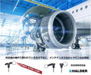 ハルダー(HALDER)は、ドイツ航空連邦局から認証(EASA Part 21G)を受けています。クイックリリースピンは高品質なのはもちろんのこと、小ロット多品種、短納期対応を得意とし、必要な分だけ素早く納入します。また、特注品の受託可能です。