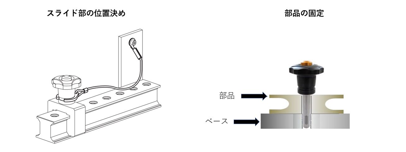 ワーク・部品などの固定、頻繁に着脱が行われる仮止め・交換・位置決め・保持・連結にも使用できます。