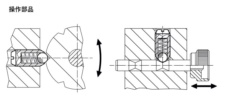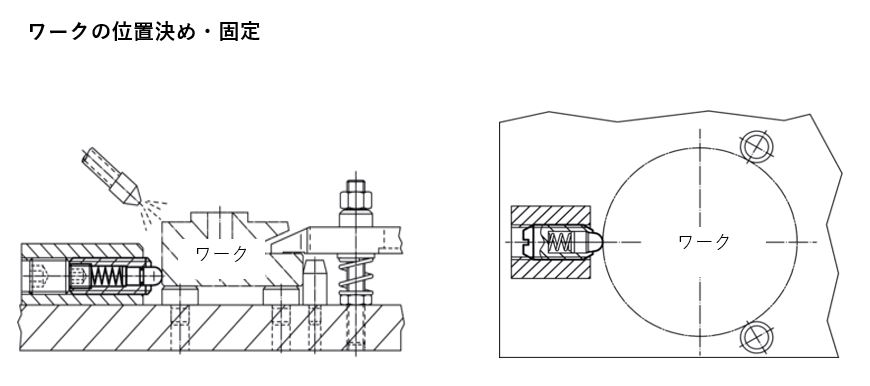 スプリングプランジャーとは、荷重が掛かるとボール(ピン)は内部に押し込まれ負荷が無くなるとバネ力で押し出されます。スプリングプランジャーはこの動作を利用してワークの位置決め・固定・押出しなどの用途に使用されます。工場で使われる装置・治具から自動車・家電などの製品まで様々な用途・場所・目的で使われている汎用性の高いメカ部品です。
