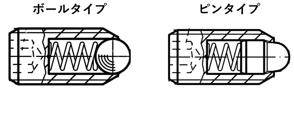 スプリングプランジャーはボールタイプとピンタイプの2種類があります。ボールタイプはスライド部の固定・位置決めにピンタイプはワークの押出しに適しています。また取付方法もねじ込みタイプと圧入タイプがあります。材質はスティール・ステンレス・プラスチック製などがあり、医療・食品の分野ではステンレス製のスプリングプランジャーが多く使用されています。スプリングプランジャーはボール(またピン)とスプリングで構成されていて、プランジャ・ボールプランジャ・ピンプランジャとも呼ばれています。