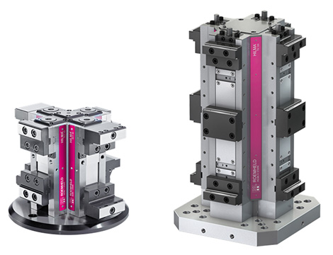マシンバイスで高度な技術を持つロームヘルドグループ(Roemheld)のヒルマ(HILMA)が開発したタワー型バイスは横形の加工機向けに最適設計されていますが、無人化システムへ組み込まれた実績や、5軸加工機への採用実績もあります。テーブル回転時のワークと機械の干渉をさけるため、4面タイプの他、3面タイプもラインナップしております。